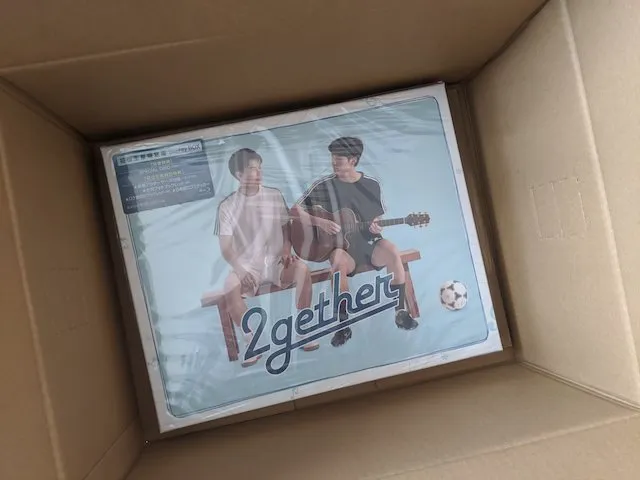 サイズに関してはあまり気にしてなかったのですが、ダンボールを開いた瞬間に想像してたよりも大きいアウターケースに、見つめ合ってるサラワットとタインが突然目に入り「笑みがこぼれる」とはこういうことかっていう状態になりました。
